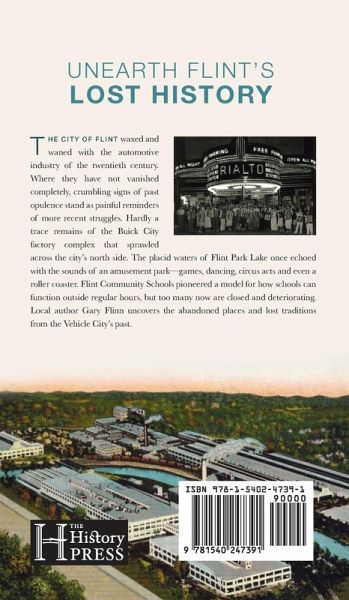 The city of Flint waxed and waned with the automotive industry of the twentieth century. Where they have not vanished completely, crumbling signs of past opulence stand as painful reminders of more recent struggles. Hardly a trace remains of the Buick City factory complex that sprawled across the city's north side. The placid waters of Flint Park Lake once echoed with the sounds of an amusement park--games, dancing, circus acts and even a roller coaster. Flint Community Schools pioneered a model for how schools can function outside regular hours, but too many now are closed and deteriorating. Local author Gary Flinn uncovers the abandoned places and lost traditions from the Vehicle City's past.
