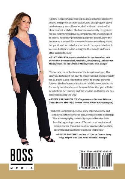 Have you ever met someone who defied all odds? Meet Rebecca Contreras. Born into poverty to a drug-addicted mother, Rebecca has to fight for survival from her very first breath. When she's five years old, her mother leaves for the store and doesn't return. This abandonment is one of many betrayals, defining her youth with uncertainty, neglect, and every imaginable type of abuse, including an attempt on her life. A lost girl for almost two decades, formed from dysfunction and stuck in a generational cycle of destruction, the track of Rebecca's life suddenly changes in a transformative moment. Her hunger to learn overpowers her insecurities and catapults her from a dark trajectory of survival to a level of success most people with college degrees can only aspire to achieve-Texas gubernatorial director to presidential special advisor to millionaire entrepreneur-yet Rebecca soars through them all with a formal education of no more than a GED. Once a mentee, now a mentor. Once a victim, now a boss. Rebecca's story is proof that with hard work and integrity, you can overcome anything and that with grit, focus, faith, and a relentless pursuit of your passion, doors you could only dream of can open!