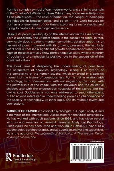 Porn is a complex symbol of our current world, and a shining example of the 'Shadow' of the Western culture. While many books essentially show its negative sides, the risks of addiction, the danger of damaging the relationship between sexes, and so on, this work focuses on porn as a phenomenon of our times, exploring its several colours, and trying to capture its inner logic and essence. Despite its pervasive ubiquity in the internet and in the lives of many, porn is apparently the ultimate taboo in the consulting room: in fact, very rarely does a patient mention something detailed about his or her use of porn. In parallel with its growing presence, the last forty years have witnessed a significant growth of publications about porn. The present work aims at deepening some aspects of internet porn from the perspective of Analytical Psychology, seeing it as symbol of the complexity of the human psyche, emerged in a specific moment of the history of consciousness.