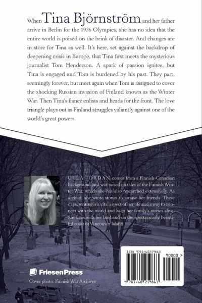 When Tina Björnström and her father arrive in Berlin for the 1936 Olympics, she has no idea that the entire world is poised on the brink of disaster. And changes are in store for Tina as well. It's here, set against the backdrop of deepening crisis in Europe, that Tina first meets the mysterious journalist Tom Henderson. A spark of passion ignites, but Tina is engaged and Tom is burdened by his past. They part, seemingly forever, but meet again when Tom is assigned to cover the shocking Russian invasion of Finland known as the Winter War. Then Tina's fiancé enlists and heads for the front. The love triangle plays out as Finland struggles valiantly against one of the world's great powers.