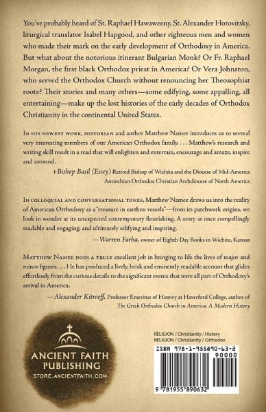 You've probably heard of St. Raphael Hawaweeny, St. Alexander Hotovitsky, liturgical translator Isabel Hapgood, and other righteous men and women who made their mark on the early development of Orthodoxy in America. But what about the notorious itinerant Bulgarian Monk? Or Fr. Raphael Morgan, the first black Orthodox priest in America? Or Vera Johnston, who served the Orthodox Church without renouncing her Theosophist roots? Their stories and many others-some edifying, some appalling, all entertaining-make up the lost histories of the early decades of Orthodox Christianity in the continental United States.