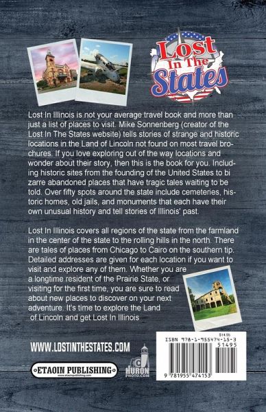 Lost In Illinois is not your average travel book and more than just a list of places to visit. Mike Sonnenberg (creator of the Lost In The States website) tells stories of strange and historic locations in the Land of Lincoln not found on most travel brochures. If you love exploring out of the way locations and wonder about their story, then this is the book for you. Including historic sites from the founding of the United States to bizarre abandoned places that have tragic tales waiting to be told. Over fifty spots around the state include cemeteries, historic homes, old jails, and monuments that each have their own unusual history and tell stories of Illinois' past. Lost In Illinois covers all regions of the state from the farmland in the center of the state to the rolling hills in the north. There are tales of places from Chicago to Cairo on the southern tip. Detailed addresses are given for each location if you want to visit and explore any of them. Whether you are a longtime resident of the Prairie State, or visiting for the first time, you are sure to read about new places to discover on your next adventure. It's time to explore the Land of Lincoln and get Lost In Illinois