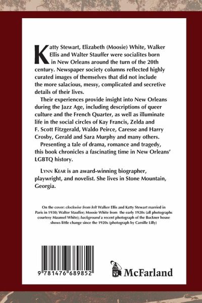 Katty Stewart, Elizabeth (Moosie) White, Walker Ellis and Walter Stauffer were socialites born in New Orleans around the turn of the 20th century. Among their ancestors were Confederate soldiers, plantation owners, self-made millionaires and even a U.S. President. This book tells the story of four flawed, socially connected people who used newspaper society columns to craft highly curated images of themselves. But the newspapers of the time did not include the more salacious, messy, complicated and secretive details of their lives. This is also a social history of New Orleans during the Jazz Age, including descriptions of queer culture, the French Quarter, European travel, and life in the social circles of Kay Francis, Zelda and F. Scott Fitzgerald, Waldo Peirce, Caresse and Harry Crosby, Gerald and Sara Murphy and many others. Full of humorous anecdotes, drama, romance and tragedy, this book is an insightful chronicle of a fascinating time in New Orleans' LGBTQ history.