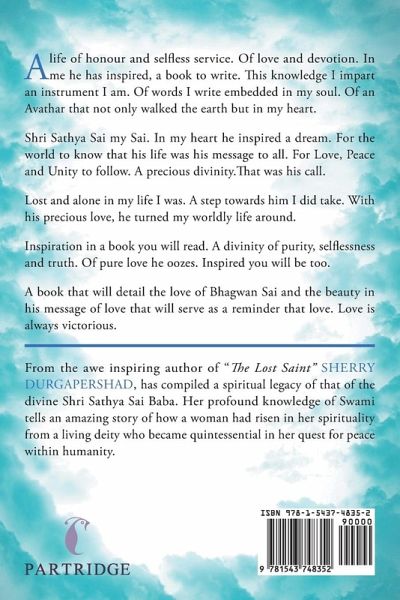 A life of honour and selfless service. Of love and devotion. In me he has inspired, a book to write. This knowledge I impart an instrument I am. Of words I write embedded in my soul. Of an Avathar that not only walked the earth but in my heart. Shri Sathya Sai my Sai. In my heart he inspired a dream. For the world to know that his life was his message to all. For Love, Peace and Unity to follow. A precious divinity.That was his call. Lost and alone in my life I was. A step towards him I did take. With his precious love, he turned my worldly life around. Inspiration in a book you will read. A divinity of purity, selflessness and truth. Of pure love he oozes. Inspired you will be too. A book that will detail the love of Bhagwan Sai and the beauty in his message of love that will serve as a reminder that love. Love is always victorious.