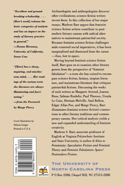Archaeologists and anthropologists discover other civilizations; science fiction writers invent them. In this collection of her major essays, Marleen Barr argues that feminist science fiction writers contribute to postmodern literary canons with radical alternatives to mainstream patriarchal society. Because feminist science fiction challenges male-centered social imperatives, it has been marginalized and dismissed from the canon--thus, lost in space. Moving beyond feminist science fiction itself, Barr goes on to examine other literary genres from the perspective of 'feminist fabulation'--a term she has coined to encompass science fiction, fantasy, utopian literature, and mainstream literature that critiques patriarchal fictions. Discussing the works of such writers as Margaret Atwood, Joanna Russ, Salman Rushdie, Paul Theroux, Ursula Le Guin, Herman Melville, Saul Bellow, Edgar Allan Poe, and Marge Piercy, Barr illuminates feminist science fiction's connections to other literary traditions and contemporary canons. Her critical analysis yields a new and expanded understanding of feminist creativity.