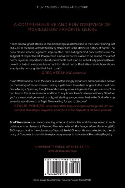 Two horror films were nominated for the Academy Award for Best Picture in 2018, and one of them--The Shape of Water--won. Since 1990, the production of horror films has risen exponentially worldwide, and in 2013, horror films earned an estimated $400 million in ticket sales. Horror has long been the most popular film genre, and more horror movies have been made than any other kind. We need them. We need to be scared, to test ourselves, laugh inappropriately, scream, and flinch. We need to get through them and come out, blinking, still in one piece. Lost in the Dark: A World History of Horror Film is a straightforward history written for the general reader and student that can serve as a comprehensive entry-level reference work. The volume provides a general introduction to the genre, serves as a guidebook to its film highlights, and celebrates its practitioners, trends, and stories. Starting with silent-era horror films and ending with 2020's The Invisible Man, Lost in the Dark looks at decades of horror movies. Author Brad Weismann covers such topics as the roots of horror in literature and art, monster movies, B-movies, the destruction of the American censorship system, international horror, torture porn, zombies, horror comedies, horror in the new millennium, and critical reception of modern horror. A sweeping survey that doesn't scrimp on details, Lost in the Dark is sure to satisfy both the curious and the completist.