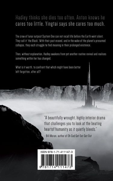 "A beautifully wrought, highly interior drama that challenges you to look at the beating heart of humanity as it quietly bleeds." - Bill Moran, author of Oh God Get Out Get Out ------------------------------------------------- The crew of lunar outpost System One can not recall life before the Earth went silent. They call it 'the Black'. With their past erased, and in the wake of the planet's presumed collapse, they each struggle to find meaning in their prolonged existence. Then, without explanation, Hadley awakens from yet another routine revival and realises something within her has changed. What is it worth, to confront that which might have been better left forgotten, after all? ------------------------------------------------- In this purposeful debut, Adam B. Davy offers an experimental lens through which to explore perspectives on self-worth and what it means to live. Beneath its expansive veneer beats the heart of a deeply intimate story of human connection that will resonate long after the final page is turned.