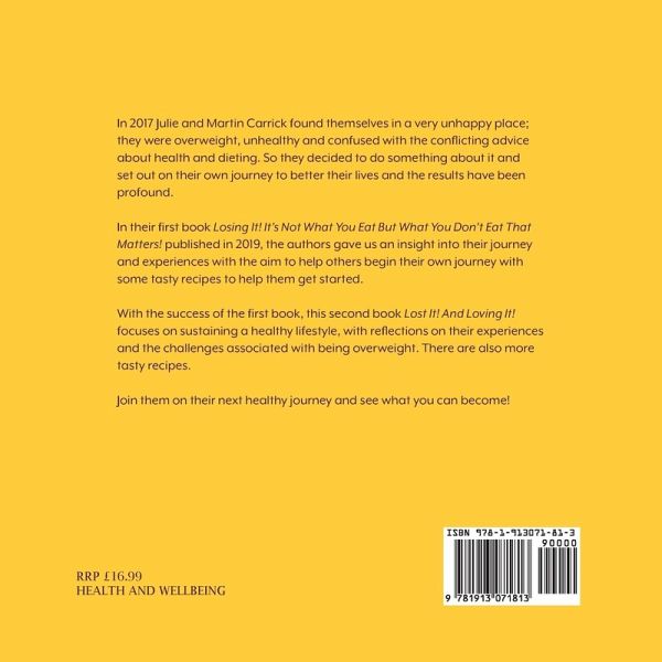 In 2017 Julie and Martin Carrick found themselves in a very unhappy place; they were overweight, unhealthy and confused with the conflicting advice about health and dieting. So they decided to do something about it and set out on their own journey to better their lives and the results have been profound. In their first book Losing It! It's Not What You Eat But What You Don't Eat That Matters! published in 2019, the authors gave us an insight into their journey and experiences with the aim to help others begin their own journey with some tasty recipes to help them get started. With the success of the first book, this second book Lost It! And Loving It! focuses on sustaining a healthy lifestyle, with reflections on their experiences and the challenges associated with being overweight. There are also more tasty recipes. Join them on their next healthy journey and see what you can become!