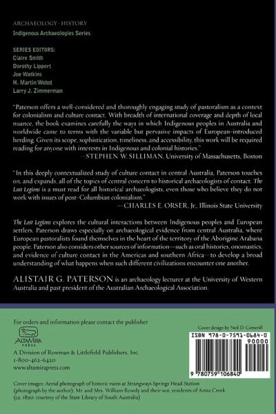 In this deeply contextualized study of culture contact in central Australia, Paterson touches on, and expands, all of the topics of central concern to historical archaeologists of contact. The Lost Legions is a must-read for all historical archaeologists, even those who believe they do not work with issues of post-Columbian colonialism. -- Charles E. Orser, Jr., Illinois State University A work that is a valuable addition to the historical archaeology of the Australian frontier. Australian Historical Studies, December 2008 20081201 This new book makes a valuable contribution to the archaeological study of culture contact in general, but in Australia more particularly, where monograph-length studies which demonstrate the potential for a nuanced and in-depth analysis of the historical archaeology of Indigenous people remain rare. Paterson's book is a welcome addition, not only in drawing together the results of his research and publication in Australian contact archaeology over the course of almost a decade, but also in pointing to the potential for Australian historical archaeology to contribute to broader international debates regarding the nature and impact of settler colonialism, and the role of archaeology in giving voice to marginalised and subaltern peoples...Paterson's volume is engagingly written and should appeal not only to archaeologists but to a broader audience who are interested in the hidden histories of life on the Australian pastoral frontier. This is an important book which emonstrates the potential contribution of Australian historical archaeology to broader global debates and to issues of contemporary public concern. Archaeology In Oceania, April 2010 20100401 Paterson offers a well-considered and thoroughly engaging study of pastoralism as a context for colonialism and culture contact. With breadth of international coverage and depth of local nuance, the book examines carefully the ways in which Indigenous peoples in Australia and worldwide came to terms with the variable but pervasive impacts of European-introduced herding. Given its scope, sophistication, timeliness, and accessibility, this work will be required reading for anyone with interests in Indigenous and colonial histories. -- Stephen W. Silliman, University of Massachusetts, Boston The volume offers a thoughtful and well-documented study of culture contact on one frontier. As such, it offers a useful beginning for a comparative analysis of the processes and practices that have shaped settler pastoralism in other world areas and will prove of value to those with interests in these processes in southern Africa and elsewhere. South African Archaeological Bulletin