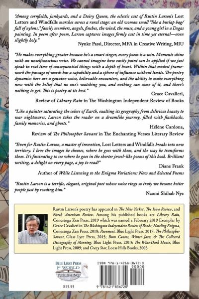 "Among cornfields, junkyards, and a Dairy Queen, the eclectic cast of Rustin Larson’s Lost Letters and Windfalls marches across a rural stage: an old woman small ‘like a burlap bag/ full of nylons,’ family members, angels, finches, the wind, the muse, and a young girl in a Degas painting. The poet asserts: ‘The light falls upon all things. I have/ my memory of you—quiet as a/ picture frame among all these broken houses.’ In poem after poem, Larson captures images firmly cast in time yet eternal—even slightly holy: ‘But here’s what we are: each man, each woman,/ each neuter object, a church.’" "‘Listen,’ Larson urges, ‘the world/ begins in a moment.’ The moments described in these poems are painterly and vivid. The poet trusts only his ‘sense of touch.’ They conjure a world of isolated stillness where characters can ‘choose to stand outside of ourselves if we wish, the snow falling.’ But also a world of connection where ‘planets are fishing/ for us, wanting/ us’ and ‘[t]he moon is the friend of the earth / and the earth of the sun.’ This is a book of small tendernesses and lightning bolts that will stay with you." Rustin Larson’s poetry has appeared in The New Yorker, The Iowa Review, and North American Review. He won 1st Editor’s Prize from Rhino and was a prize winner in The National Poet Hunt and The Chester H. Jones Foundation contests. A graduate of the Vermont College MFA in Writing, Larson was an Iowa Poet at The Des Moines National Poetry Festival, and a featured poet at the Poetry at Round Top Festival. He is a poetry professor at Maharishi University, a writing instructor at Kirkwood Community College, and has also been a writing instructor at Indian Hills Community College. His honors and awards also include Pushcart Prize Nominee (seven times, 1988-2010); featured writer, DMACC Celebration of the Literary Arts, 2007, 2008; and finalist, New England Review Narrative Poetry Competition, 1985.