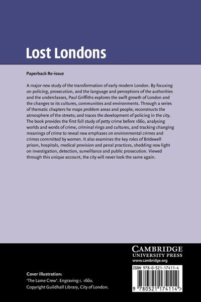 A major study of the transformation of early modern London. By focusing on policing, prosecution, and the language and perceptions of the authorities and the underclasses, Paul Griffiths explores the swift growth of London and the changes to its cultures, communities, and environments. Through a series of thematic chapters he maps problem areas and people; reconstructs the atmosphere of the streets; and traces the development of policing in the city. The book provided the first full study of petty crime before 1660, analysing worlds and words of crime, criminal rings and cultures, and tracking changing meanings of crime to reveal alternative emphases on environmental crimes and crimes committed by women. It also examines the key roles of Bridewell prison, hospitals, medical provision, and penal practices, shedding light on investigation, detection, surveillance, and public prosecution. Viewed through this fascinating account, the city will never look the same again.