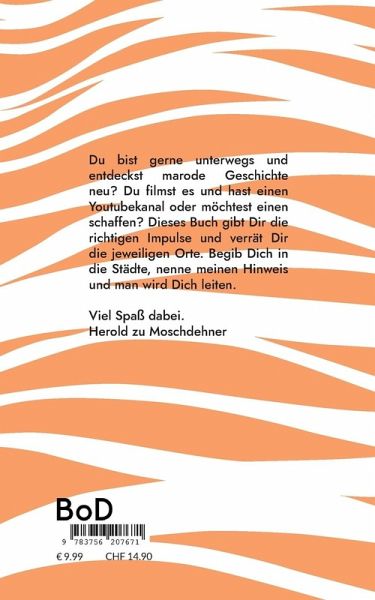 Du bist gerne unterwegs und entdeckst marode Geschichte neu? Du filmst es und hast einen Youtubekanal oder möchtest einen schaffen? Dieses Buch gibt Dir die richtigen Impulse und verrät Dir die jeweiligen Orte. Begib Dich in die Städte, nenne meinen Hinweis und man wird Dich leiten. Viel Spaß dabei. Herold zu Moschdehner