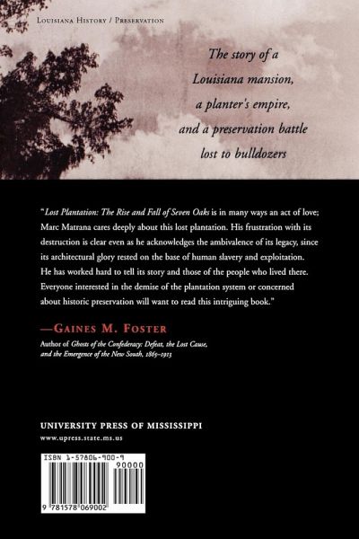 Marc R. Matrana practices medicine at Ochsner Medical Center and is an active preservationist and historian. He is author of Lost Plantations of the South and coauthor of Southern Splendor: Saving Architectural Treasures of the Old South, both published by University Press of Mississippi.