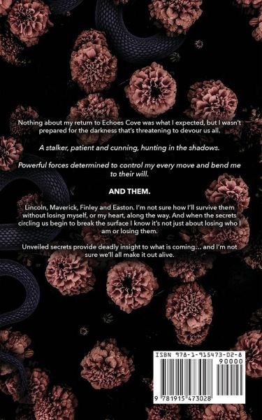 Nothing about my return to Echoes Cove was what I expected, but I wasn't prepared for the darkness that's threatening to devour us all. A stalker, patient and cunning, hunting in the shadows. Powerful forces determined to control my every move and bend me to their will. And them. Lincoln, Maverick, Finley and Easton. I'm not sure how I'll survive them without losing myself, or my heart, along the way. And when the secrets circling us begin to break the surface I know it's not just about losing who I am or losing them. Unveiled secrets provide deadly insight to what is coming... and I'm not sure we'll all make it out alive.
