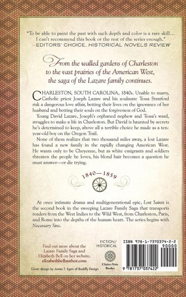 From the walled gardens of Charleston to the vast prairies of the American West, the saga of the Lazare family continues. Charleston, South Carolina, 1840s. Unable to marry, Catholic priest Joseph Lazare and his soulmate Tessa Stratford risk a dangerous love affair, betting their lives on the ignorance of her husband and betting their souls on the forgiveness of God. Young David Lazare, Joseph's orphaned nephew and Tessa's ward, struggles to make a life in Charleston. But David is haunted by secrets he's determined to keep, above all a terrible choice he made as a ten-year-old boy on the Oregon Trail. None of them realizes that two thousand miles away, a lost Lazare has found a new family in the rapidly changing American West. He wants only to be Cheyenne, but as white emigrants and soldiers threaten the people he loves, his blond hair becomes a question he must answer-or die trying. Will the truth unite the Lazares-or destroy them? For fans of The Thorn Birds and Sara Donati, Lost Saints is the second book in the sweeping Lazare Family Saga that transports readers from the West Indies to the Wild West, from Charleston, Paris, and Rome into the depths of the human heart. The series begins with Book One, Necessary Sins.