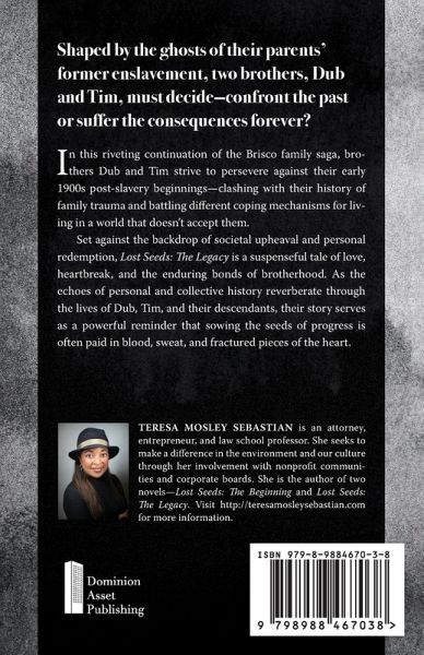 Shaped by the ghost of their parents' former enslavement, two brothers, Dub and Tim, must decide-confront the past or suffer the consequences forever? In this riveting continuation of the Brisco family saga, brothers Dub and Tim strive to persevere against their early 1900s post-slavery beginnings-clashing with their history of family trauma and their different coping mechanisms for living in a world that doesn't accept them. While Dub becomes a respected coal miner and finds prosperity for his family, Tim continues a slow descent into a fog of psychosis, alcoholism, and perpetual joblessness-forced to live an isolated existence on Dub's property despite his desire for deeper connection. When the ultimate tragedy strikes and the family is forced to confront the deep-seated racism of their small town and the resentments they hold toward one another, the brothers are forced to confront the wounds of their past, leaving them wondering if their actions are the toll exacted for the next generation's progress. Will they overcome their disparate lives and animosity toward one another and come together to protect the next generation, or is it too late? Set against the backdrop of 1960s America, Lost Seeds: The Legacy is a suspenseful tale of love, heartbreak, and the enduring bonds of brothers. As the echoes of personal and collective history reverberate through the lives of Dub, Tim, and their descendants, their story serves as a powerful reminder that sowing the seeds of progress is often paid in blood, sweat, and fractured pieces of the heart.