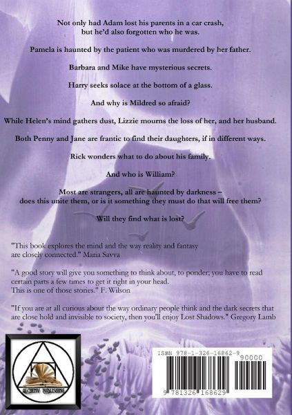 Not only had Adam lost his parents in a car crash, but he'd also forgotten who he was. Pamela is haunted by the patient who was murdered by her father. Barbara and Mike have mysterious secrets. Harry seeks solace at the bottom of a glass. And why is Mildred so afraid? While Helen's mind gathers dust, Lizzie mourns the loss of her, and her husband. Both Penny and Jane are frantic to find their daughters, if in different ways. Rick wonders what to do about his family. And who is William? Most are strangers, all are haunted by darkness - does this unite them, or is it something they must do that will free them? Will they find what is lost? Warning: strong language. Cover Design: Julie Elizabeth Powell Original Artwork: Julie Elizabeth Powell