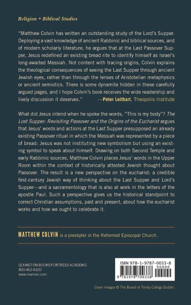 In The Lost Supper, Matthew Colvin argues that Jesus did not create new symbolism with his words and actions at the Last Supper but, rather, invoked an already-existing Passover ritual. He therefore corrects assumptions, past and present, about how the Eucharist works and how we ought to celebrate it.