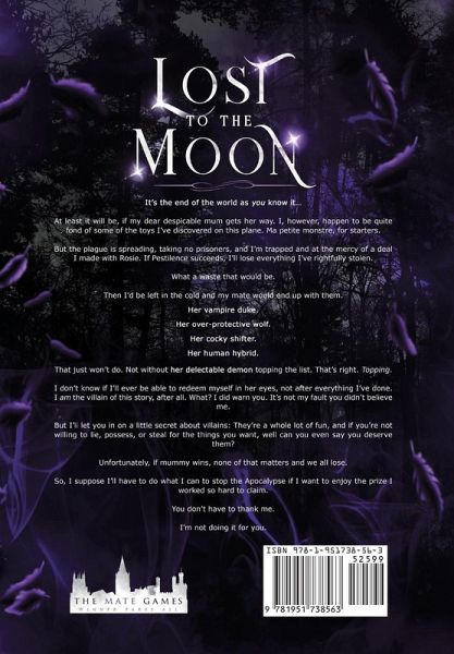 It's the end of the world as you know it... At least it will be, if my dear despicable mum gets her way. I, however, happen to be quite fond of some of the toys I've discovered on this plane. Ma petite monstre, for starters. But the plague is spreading, taking no prisoners, and I'm trapped and at the mercy of a deal I made with Rosie. If Pestilence succeeds, I'll lose everything I've rightfully stolen. What a waste that would be. Then I'd be left in the cold and my mate would end up with them. Her vampire duke. Her over-protective wolf. Her cocky shifter. Her human hybrid. That just won't do. Not without her delectable demon topping the list. That's right. Topping. I don't know if I'll ever be able to redeem myself in her eyes, not after everything I've done. I am the villain of this story, after all. What? I did warn you. It's not my fault you didn't believe me. But I'll let you in on a little secret about villains: They're a whole lot of fun, and if you're not willing to lie, possess, or steal for the things you want, well can you even say you deserve them? Unfortunately, if mummy wins, none of that matters and we all lose. So, I suppose I'll have to do what I can to stop the Apocalypse if I want to enjoy the prize I worked so hard to claim. You don't have to thank me. I'm not doing it for you.
