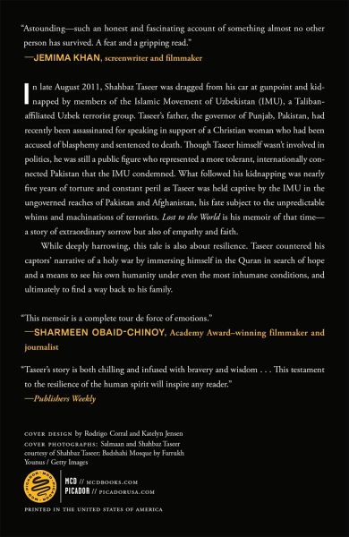 Shahbaz Taseer's memoir of his five-year-long captivity at the hands of the Islamic Movement of Uzbekistan. In late August 2011, Shahbaz Taseer was dragged from his car at gunpoint and kidnapped by members of the Islamic Movement of Uzbekistan (IMU), a Talibanaffiliated Uzbek terrorist group. Taseer's father, the governor of Punjab, Pakistan, had recently been assassinated for speaking in support of a Christian woman who had been accused of blasphemy and sentenced to death. Though Taseer himself wasn't involved in politics, he was still a public figure who represented a more tolerant, internationally connected Pakistan that the IMU condemned. What followed his kidnapping was nearly five years of torture and constant peril as Taseer was held captive by the IMU in the ungoverned reaches of Pakistan and Afghanistan, his fate subject to the unpredictable whims and machinations of terrorists. Lost to the World is his memoir of that time-a story of extraordinary sorrow but also of empathy and faith. While deeply harrowing, this tale is also about resilience. Taseer countered his captors' narrative of a holy war by immersing himself in the Quran in search of hope and a means to see his own humanity under even the most inhumane conditions, and ultimately to find a way back to his family.
