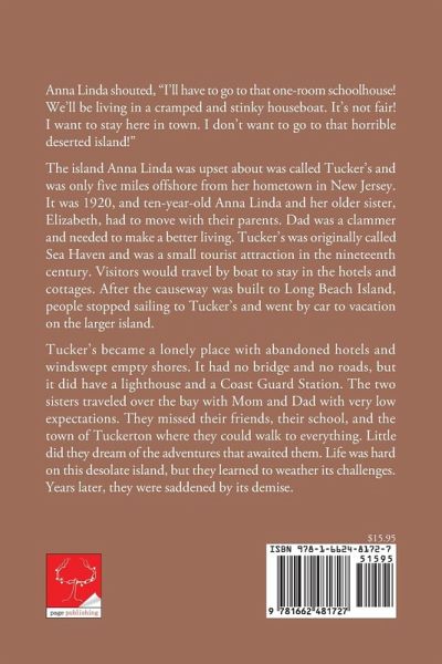 Anna Linda shouted, "I'll have to go to that one-room schoolhouse! We'll be living in a cramped and stinky houseboat. It's not fair! I want to stay here in town. I don't want to go to that horrible deserted island!" The island Anna Linda was upset about was called Tucker's and was only five miles offshore from her hometown in New Jersey. It was 1920, and ten-year-old Anna Linda and her older sister, Elizabeth, had to move with their parents. Dad was a clammer and needed to make a better living. Tucker's was originally called Sea Haven and was a small tourist attraction in the nineteenth century. Visitors would travel by boat to stay in the hotels and cottages. After the causeway was built to Long Beach Island, people stopped sailing to Tucker's and went by car to vacation on the larger island. Tucker's became a lonely place with abandoned hotels and windswept empty shores. It had no bridge and no roads, but it did have a lighthouse and a Coast Guard Station. The two sisters traveled over the bay with Mom and Dad with very low expectations. They missed their friends, their school, and the town of Tuckerton where they could walk to everything. Little did they dream of the adventures that awaited them. Life was hard on this desolate island, but they learned to weather its challenges. Years later, they were saddened by its demise.