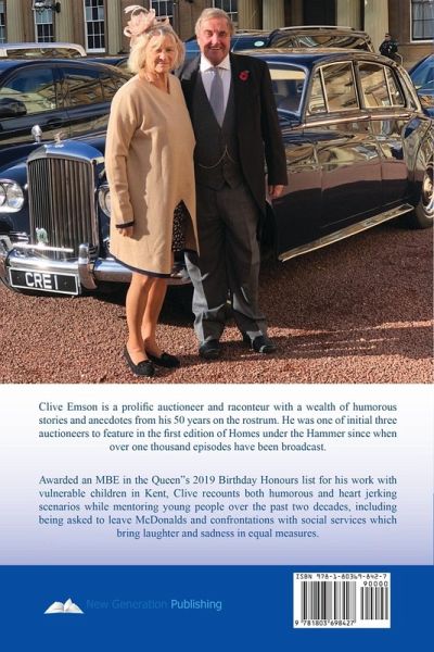 Clive Emson is a prolific auctioneer and raconteur with a wealth of humorous stories and anecdotes from his 50 years on the rostrum. He was one of initial three auctioneers to feature in the first edition of Homes under the Hammer since when over one thousand episodes have been broadcast. Awarded an MBE in the Queen's 2019 Birthday Honours list for his work with vulnerable children in Kent, Clive recounts both humorous and heart jerking scenarios while mentoring young people over the past two decades, including being asked to leave McDonalds and confrontations with social services which bring laughter and sadness in equal measures.