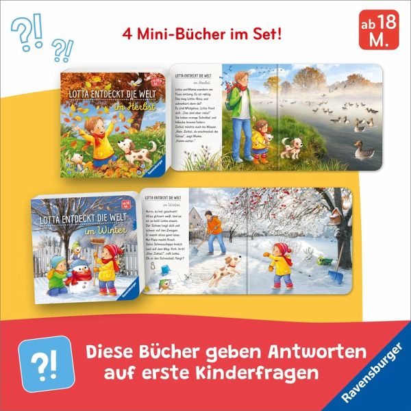 Vier wunderbare Lotta-Abenteuer in kleinem Format und niedlichem Schmuckschuber: Oh, wie schön der Frühling ist! Lotta staunt über das kleine Fohlen, pflanzt Gemüse im Garten und entdeckt ein Vogelnest. Im Sommer darf Lotta süße Kirschen naschen, barfuß laufen und natürlich im See baden. Die bunten Herbstblätter liebt Lotta! Sie lässt ihren Drachen steigen, sammelt Pilze und Kastanien. Lotta freut sich über den Schnee im Winter! Man kann Schneemann bauen und Schlitten fahren.