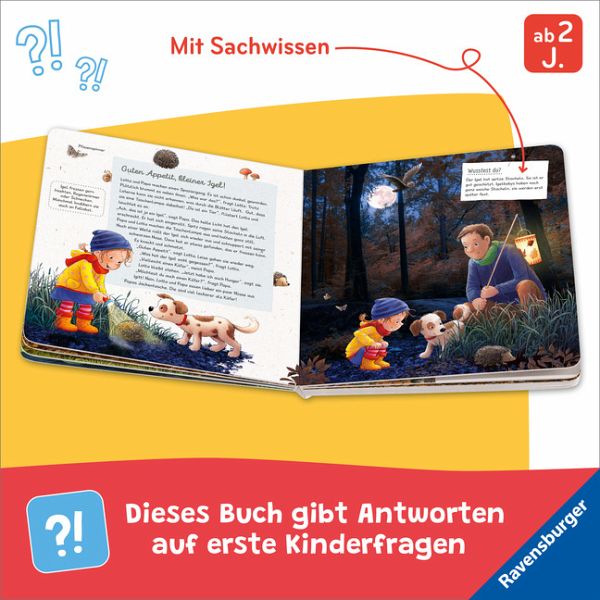 Eingebettet in liebevolle Vorlesegeschichten wird spielerisch und charmant erstes Sachwissen vermittelt: Igel sind gern in der Dämmerung unterwegs, Schwanenküken haben graue Federn und Katzenmütter können ihre Kinder tragen.