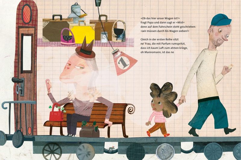 Das ist doch keine Dame, das ist eine Ziege! Und der Herr dahinten ist vielleicht ein Elefant? Lotte und Papa wundern sich nicht schlecht, wer alles so mitreist. Eigentlich wäre Lotte ja selbst gerne eine Katze und manchmal tut sie auch so als ob. Aber hier geht es nicht mit rechten Dingen zu. Und der Schaffner? Der klärt sie auf: Das ist der Sonderzug zum Zoo! Während Papa sich die Haare rauft, hat Lotte schon eine Lösung: »Jetzt nimm die Reise nicht so schwer, ich fahr als Katze, du als Bär.«
