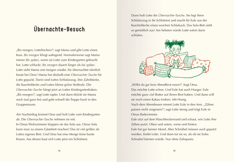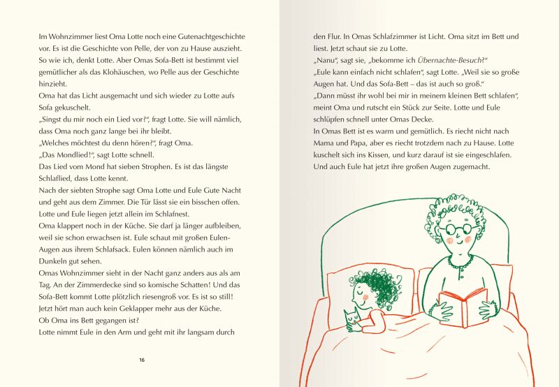 Lediglich ihre Konturen sind in rot-grün gezeichnet und wenn Lotte einen roten Pulli, grüne Hosen und rote Turnschuhe trägt, ist es bei ihrer Oma genau andersrum. Eine zauberhafte Idee, um zu zeigen, wie die zwei sich ergänzen.