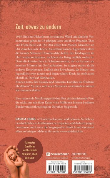 1945: Endlich ist der Krieg vorbei! Erst hat die 13-jährige Lotte gar nicht das Gefühl, dass sich so viel verändert. Doch dann taucht eine Frau in einer Schwesterntracht im Dorf auf, die so ganz anders ist als die anderen Erwachsenen: Schwester Dorothea. Eine Erwachsene, die Kindern zuhört und sie ernst nimmt? Eine Diakonisse, die nach den langen Kriegsjahren von der Liebe Gottes redet? Das stößt nicht überall auf wohlwollende Reaktionen. Manche wünschen sich Hitlers Deutschland zurück. Als Schwester Dorotheas Bemühungen, den Kindergarten vor Ort wiederaufzubauen, sabotiert werden, machen Lotte, ihre Freunde und Schwester Dorothea sich daran, die Übeltäter zu überführen. Lotte erlebt ihren neu gewonnenen Glauben an Gott als Stärkung und erfährt, dass auch ihre leisen Talente wichtig sind, um die mysteriösen Fälle zu lösen. In dieser Nachkriegsgeschichte folgen junge Leserinnen und Leser den Spuren einer Frau, die nicht nur mit ihren Skulpturen viele Millionen Herzen berührte: Diakonisse, Künstlerin und Bundeverdienstkreuzträgerin Dorothea Steigerwald.