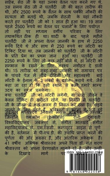 Yah kahani aise vyakti ki hai jinke liye Lottery Jeevan ka hissa ban chuka tha, Lekin usme bhi aisa niyantran ki pratimah kewal ek lottery, wo bhi ek hi company ki aur ek hi rashi ki. Jaise Lottery nahi le rahe ho balki kisi niyam aur sankalp ke sath apna kartavya ka paalan kar rahe ho. Kya Chaturvedi ji ko Lottery lagegi, ya sara jeevan ve kewal ticket hi kharidte rahenga, ya Niyati ne Chaturvedi ji ke Jeevan me kuchh alag hi Niyat kar rakha hai. Aaiye janne ke liye padhte hain, avishwasniya ghatna se bhari hui kahani ""Lottery"".