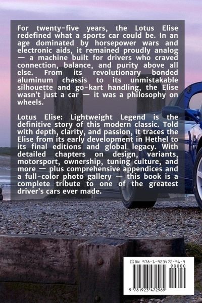 For twenty-five years, the Lotus Elise redefined what a sports car could be. In an age dominated by horsepower wars and electronic aids, it remained proudly analog - a machine built for drivers who craved connection, balance, and purity above all else. From its revolutionary bonded aluminum chassis to its unmistakable silhouette and go-kart handling, the Elise wasn't just a car - it was a philosophy on wheels. Lotus Elise: Lightweight Legend is the definitive story of this modern classic. Told with depth, clarity, and passion, it traces the Elise from its early development in Hethel to its final editions and global legacy. With detailed chapters on design, variants, motorsport, ownership, tuning culture, and more - plus comprehensive appendices and a full-color photo gallery - this book is a complete tribute to one of the greatest driver's cars ever made.