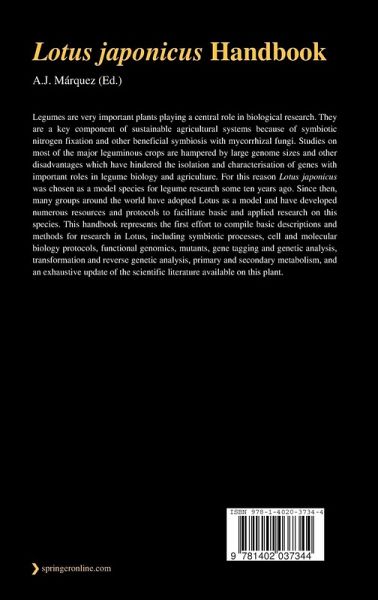Legumes are very important plants playing a central role in biological research. They are a key component of sustainable agricultural systems because of symbiotic nitrogen fixation and other beneficial symbiosis with mycorrhizal fungi. Studies on most of the major leguminous crops are hampered by large genome sizes and other disadvantages which have hindered the isolation and characterisation of genes with important roles in legume biology and agriculture. For this reason Lotus japonicus was chosen as a model species for legume research some ten years ago. Since then, many groups around the world have adopted Lotus as a model and have developed numerous resources and protocols to facilitate basic and applied research on this species. This handbook represents the first effort to compile basic descriptions and methods for research in Lotus, including symbiotic processes, cell and molecular biology protocols, functional genomics, mutants, gene tagging and genetic analysis, transformation and reverse genetic analysis, primary and secondary metabolism, and an exhaustive update of the scientific literature available on this plant.