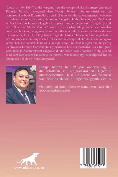 "Lotus on My Palm" is die vertaling van die oorspronklike Assamese digbundel Karatala Kamala, saamgestel deur Devajit Bhuyan. Die uniekheid van die oorspronklike boek lê daarin dat dit geskryf is sonder die kar wat algemeen voorkom in Indiese tale soos Sanskriet, Assamese, Bengali, Hindi, Gujarati, ens. Die kar of simbool word in Indiese tale gebruik in plaas van die vokale wat in Engels gebruik word. "Lotus on My Palm" is nie 'n woord-vir-woord-vertaling van die oorspronklike Assamese boek nie, aangesien dit onmoontlik is om die boek te vertaal sonder om die vokale A, E, I, O, U te gebruik. Slegs die tema en betekenis van die gedigte is behou, aangesien die skrywer self dit vanuit die oorspronklike Assamese weergawe vertaal het. Vir Karatala Kamala is Devajit Bhuyan in 2022 as digter van die jaar by die Kolkata Literary Carnival (KLC) bekroon. Die oorspronklike boek het groot gewildheid in Assam verwerf, aangesien dit die eerste boek is wat in so 'n styl geskryf is ná 600 jaar sedert Sankardeva se vertrek, wat hierdie styl bekendgestel het en uiteindelik het die styl verouder geraak.