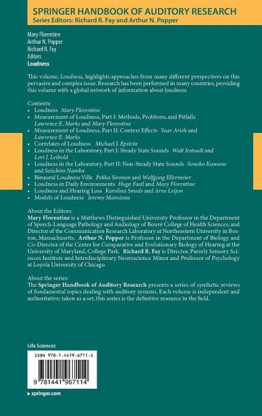 Loudness is the primary psychological correlate of intensity. When the intensity of a sound increases, loudness increases. However, there exists no simple one-to-one correspondence between loudness and intensity; loudness can be changed by modifying the frequency or the duration of the sound, or by adding background sounds. Loudness also changes with the listener's cognitive state. Loudness provides a basic reference for graduate students, consultants, clinicians, and researchers with a focus on recent discoveries. The book begins with an overview of the conceptual thinking related to the study of loudness, addresses issues related to its measurement, and later discusses the physiological effects of loud sounds, reaction times and electrophysiological measures that correlate with loudness. Loudness in the laboratory, loudness of steady-state sounds and the loudness of time-varying sounds are also covered, as are hearing loss and models.