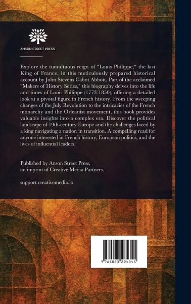 Explore the tumultuous reign of "Louis Philippe," the last King of France, in this meticulously prepared historical account by John Stevens Cabot Abbott. Part of the acclaimed "Makers of History Series," this biography delves into the life and times of Louis Philippe (1773-1850), offering a detailed look at a pivotal figure in French history. From the sweeping changes of the July Revolution to the intricacies of the French monarchy and the Orleanist movement, this book provides valuable insights into a complex era. Discover the political landscape of 19th-century Europe and the challenges faced by a king navigating a nation in transition. A compelling read for anyone interested in French history, European politics, and the lives of influential leaders. This work has been selected by scholars as being culturally important, and is part of the knowledge base of civilization as we know it. This work is in the public domain in the United States of America, and possibly other nations. Within the United States, you may freely copy and distribute this work, as no entity (individual or corporate) has a copyright on the body of the work. Scholars believe, and we concur, that this work is important enough to be preserved, reproduced, and made generally available to the public. We appreciate your support of the preservation process, and thank you for being an important part of keeping this knowledge alive and relevant.
