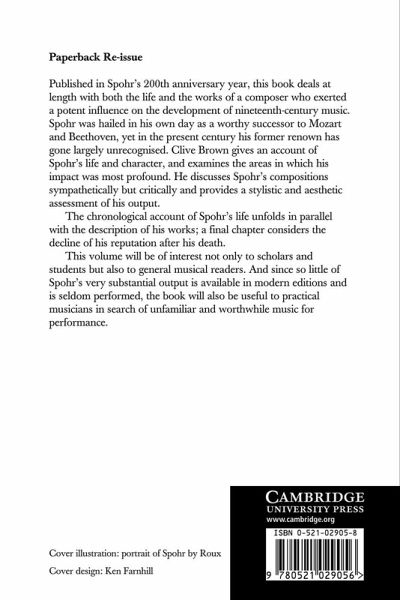 Published in Spohr's 200th anniversary year, this book is the first to deal at length with both the life and the works of a composer who exerted a strong influence on the development of nineteenth-century music. Spohr was hailed in his own day as a worthy successor to Mozart and Beethoven, yet in the present century his former renown has gone largely unrecognised. Clive Brown gives an account of Spohr's life and character, and examines the areas in which his impact was most profound. He discusses Spohr's compositions critically and provides a stylistic and aesthetic assessment of his work. The chronological account of Spohr's life unfolds in parallel with the description of his musical output; a final chapter considers the decline of his reputation after his death. This volume will be of interest not only to scholars and students but also to general musical readers. And, since so little of Spohr's very substantial output is available in modern editions and is seldom performed, the book will also prove useful to practical musicians in search of worthwhile music for performance.