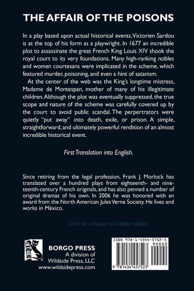 In 1677 the French court was rocked by a plot to assassinate King Louis XIV. Many high-ranking noblemen and -women were implicated, including the monarch's own mistress, Madame de Montespan, mother of his illegitimate children. "The Affair of the Poisons," as it came to be known, was carefully hushed up to avoid public scandal, and the perpetrators quietly disposed of. This dramatic account of the uncovering of the murder scheme is simple, straightforward, and immensely powerful in its rendition of an almost incredible real-life event.