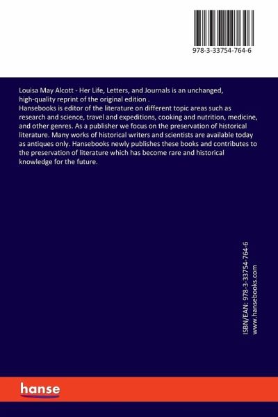 Louisa May Alcott - Her Life, Letters, and Journals is an unchanged, high-quality reprint of the original edition .Hansebooks is editor of the literature on different topic areas such as research and science, travel and expeditions, cooking and nutrition, medicine, and other genres. As a publisher we focus on the preservation of historical literature. Many works of historical writers and scientists are available today as antiques only. Hansebooks newly publishes these books and contributes to the preservation of literature which has become rare and historical knowledge for the future.