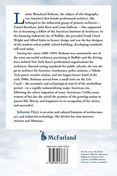 Louise Blanchard Bethune, the subject of this biography, was America's first female professional architect. She belonged to the influential group of pioneer architects--Daniel Burnham, John Root and Louis Sullivan--who supported her in becoming a fellow of the American Institute of Architects. In the booming industrial city of Buffalo, she preceded Frank Lloyd Wright and Alfred Kahn in factory design and was the key designer of the modern urban public school building, developing standards still used today. During her career (1881-1905) Bethune was consistently one of the most successful architects practicing in Buffalo and the driving force behind New York State's professional organizations for architects. Beyond setting standards for public schools, she was the go-to architect for factories, warehouses, police stations, a Nikola Tesla power transfer station, and the largest luxury hotel of the early 1900s. Bethune moved from a small town on the Erie Canal--the economic and technological marvel of the antebellum period--to a rapidly industrializing major American city, following the urban migration of many Americans. Unlike many women of her day she seized the promise of the growing nation to pursue life, liberty, and happiness in an occupation of her choice and succeeded.
