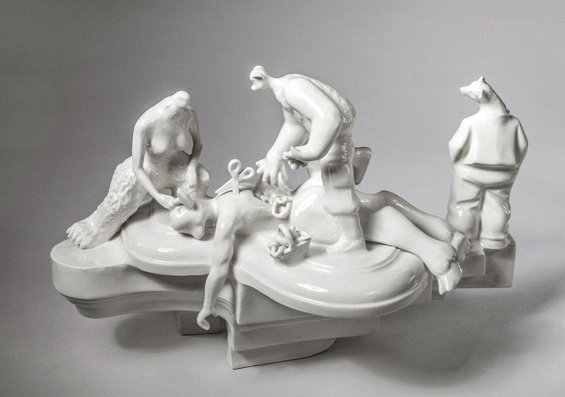 Die dänische Bildhauerin Louise Hindsgavl (geb. 1973, lebt in Kopenhagen) ist für hybride Figuren aus Porzellan und glasiertem Steinzeug bekannt: halb Mensch und halb Tier. Nur das Material erinnert noch an die idealisierten oder kitschigen Szenen traditioneller Porzellanfiguren; Hindsgavls "plastische Kollisionen" hingegen erzählen von verstörenden Begegnungen zwischen gepeinigten Halbwesen. Dafür schöpft sie aus dem brutalen Fundus überlieferter Geschichten ebenso wie aus den "Märchen" heutiger sozialer Medien, die Gewalt, sexuellen Missbrauch und Selbstverletzung normalisieren. Mithilfe eines der zerbrechlichsten Materialien rückt sie diese Trends ins Blickfeld für Diskussion und nennt ihre Skulpturen Conversation Pieces-so auch der Titel dieses interessanten und provokativen Buches.