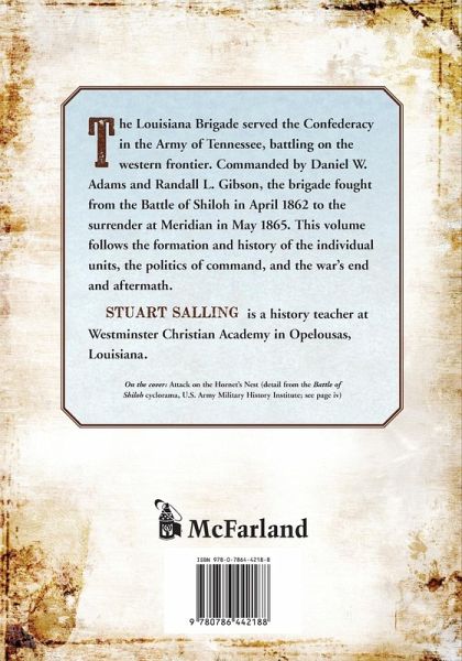 The Louisiana Brigade served the Confederacy in the Army of Tennessee, battling on the western frontier. Commanded by Daniel W. Adams and Randall L. Gibson, the brigade fought from the Battle of Shiloh in April 1862 to the surrender at Meridian in May 1865. This volume follows the formation and history of the individual units, the politics of command, and the war's end and aftermath.