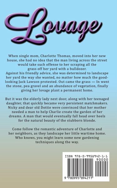 When single mom, Charlotte Thomas, moved into her new house, she had no idea that the man living across the street would take such offense to her scraping all the grass off her yard with a bulldozer. Against his friendly advice, she was determined to landscape her yard the way she wanted, no matter how much the good-looking Jack Lawson protested. Out came the grass - In went the stone, pea gravel and an abundance of vegetation, finally giving her lovage plant a permanent home. But it was the elderly lady next door, along with her teenaged daughter, that quickly became very persistent matchmakers. Nicky and dear old Dottie were convinced that her mother needed a man to help Charlie create the garden of her dreams. A man that would eventually fall head over heels for the natural beauty of the stubborn blonde. Come follow the romantic adventure of Charlotte and her neighbors, as they landscape her little wartime home. Who knows, you might learn some new gardening techniques along the way.