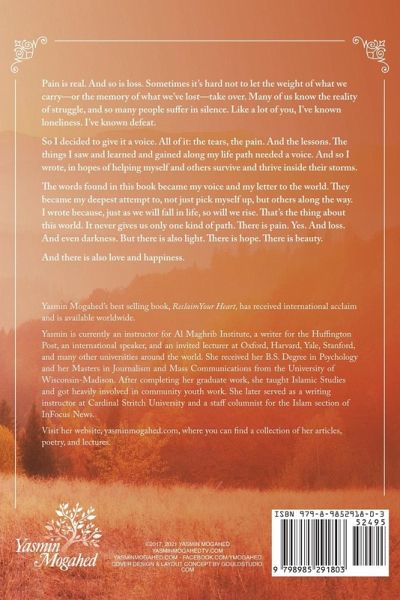 Things fall apart. And they break sometimes. Like many of you, my journey hasn’t always been easy. Pain is very real. And so is loss. Sometimes it’s hard not to let the weight of what we carry—or the memory of what we’ve lost—take over. Many of us know the reality of struggle, and so many people suffer in silence. It’s hard. It’s hard not to give up when we face the repeated disappointments of life. Like some of you, I’ve known loneliness. I’ve known defeat. I’ve fallen many times chasing mirages, and broken many bones making castles in life’s fading sands. Sometimes, all it took was one solid wave to destroy what I had spent years building. So I decided to give it a voice. All of it: the tears, the pain. And the lessons. The things I saw and learned and gained along my lifepath needed a voice. I wanted to give back, in hopes of helping myself and others survive. But then it wasn’t just about surviving. I didn’t just want people to survive inside their storms. I wanted people to thrive inside their storms. And so I wrote, as I walked through my own. The words found in this book became my voice and my letter to the world. They became my deepest attempt to, not just pick myself up, but others along the way. I wrote because, just as we will fall in life, so will we rise. That’s the thing about this world. It never gives us only one kind of path. There is pain. Yes. And loss. And even darkness. But there is also light. There is hope. There is beauty. And there is also love and happiness.