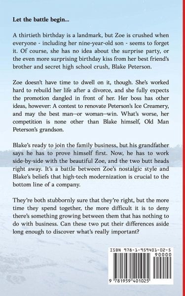 Let the battle begin... A thirtieth birthday is a landmark, but Zoe is crushed when everyone - including her nine-year-old son - seems to forget it. Of course, she has no idea about the surprise party, or the even more surprising birthday kiss from her best friend's brother and secret high school crush, Blake Peterson. Zoe doesn't have time to dwell on it, though. She's worked hard to rebuild her life after a divorce, and she fully expects the promotion dangled in front of her. Her boss has other ideas, however: A contest to renovate Peterson's Ice Creamery, and may the best man--or woman--win. What's worse, her competition is none other than Blake himself, Old Man Peterson's grandson. Blake's ready to join the family business, but his grandfather says he has to prove himself first. Now, he has to work side-by-side with the beautiful Zoe, and the two butt heads right away. It's a battle between Zoe's nostalgic style and Blake's beliefs that high-tech modernization is crucial to the bottom line of a company. They're both stubbornly sure that they're right, but the more time they spend together, the more difficult it is to deny there's something growing between them that has nothing to do with business. Can these two put their differences aside long enough to discover what's really important?