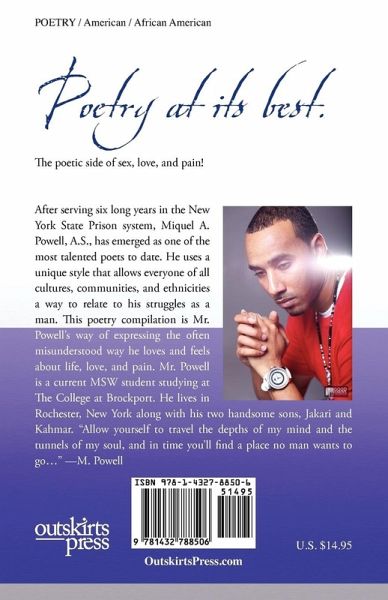 While serving six years in the New York State prison system, Miquel A. Powell used poetry to reflect on the love, pain, and pleasure surrounding his troublesome life. His poetry is considered to be the best work of poetic literature we have seen in a long time. No one is able to express their feelings on such controversial topics as sex, prison, and love in the same fashion as Mr. Powell. He simply has a unique gift. Now, as a BSW student at the College at Brockport located outside of Rochester, New York- Mr. Powell has transformed his life as prophesized in many of his poems. Most people live their lives as if the outcome was just a matter of chance, but Mr. Powell believes that everything happens for a reason and that his poetry reaches, and teaches all.