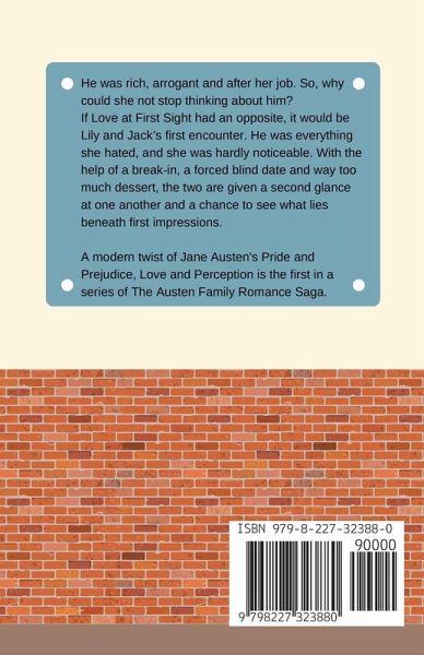 He was rich, arrogant and after her job. So, why could she not stop thinking about him? If Love at First Sight had an opposite, it would be Lily and Jack's first encounter. He was everything she hated, and she was hardly noticeable. With the help of a break-in, a forced blind date and way too much dessert, the two are given a second glance at one another and a chance to see what lies beneath first impressions. A modern twist of Jane Austen's Pride and Prejudice, Love and Perception is the first in a series of The Austen Family Romance Saga.