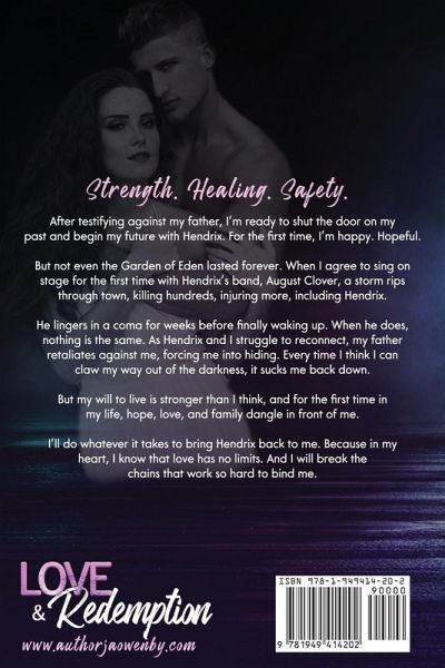 Strength. Healing. Safety. After testifying against my father, I'm ready to shut the door on my past and begin my future with Hendrix. For the first time, I'm happy. Hopeful. But not even the Garden of Eden lasted forever. When I agree to sing on stage for the first time with Hendrix's band, August Clover, a storm rips through town, killing hundreds, injuring more, including Hendrix. He lingers in a coma for weeks before finally waking up. When he does, nothing is the same. As Hendrix and I struggle to reconnect, my father retaliates against me, forcing me into hiding. Every time I think I can claw my way out of the darkness, it sucks me back down. But my will to live is stronger than I think, and for the first time in my life, hope, love, and family dangle in front of me. I'll do whatever it takes to bring Hendrix back to me. Because in my heart, I know that love has no limits. And I will break the chains that work so hard to bind me.