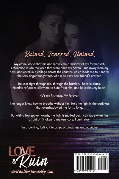 A hidden beauty. A soulful singer. Does he have the right tune to open her heart? Gemma can't seem to escape the constant reminders of her brutal past. But when her secret college application succeeds, she jumps at the chance to start a new life away from her damaged daily existence. And though singing with a sexy stranger stirs her soul, she suspects his intentions aren't pure. Indie band frontman Hendrix is plagued by guilt over his family's heartbreaking history. But when he meets the shy new girl on campus, he finds a path to forgiveness. And as he slowly falls for her quiet courage, he vows to keep her safe. But Gemma is still in danger, and a rising threat looms to shatter the fragile healing she's found with the aspiring musician. And with Hendrix desperate not to be responsible for another deadly tragedy, he's terrified they'll be torn apart. Will their destiny collapse under pressure, or will they find strength in a selfless love? Love & Ruin is the achingly raw first book in The Love & Ruin new adult series. If you like emotional rollercoaster rides, heart-stopping suspense, and passionate connections, then you'll adore J.A. Owenby's compelling drama.